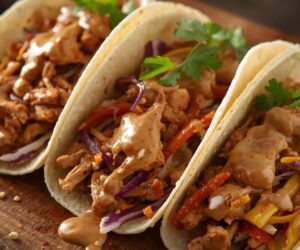 Chicken Thai Tacos bring together the comforting softness of tortillas with the bold, vibrant flavors of Thai-inspired cuisine. Served on ...