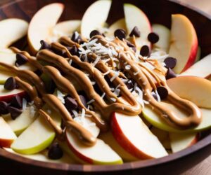 A deliciously sweet and savory treat, these apple nachos feature crisp, fresh apple slices drizzled with creamy peanut butter, then ...